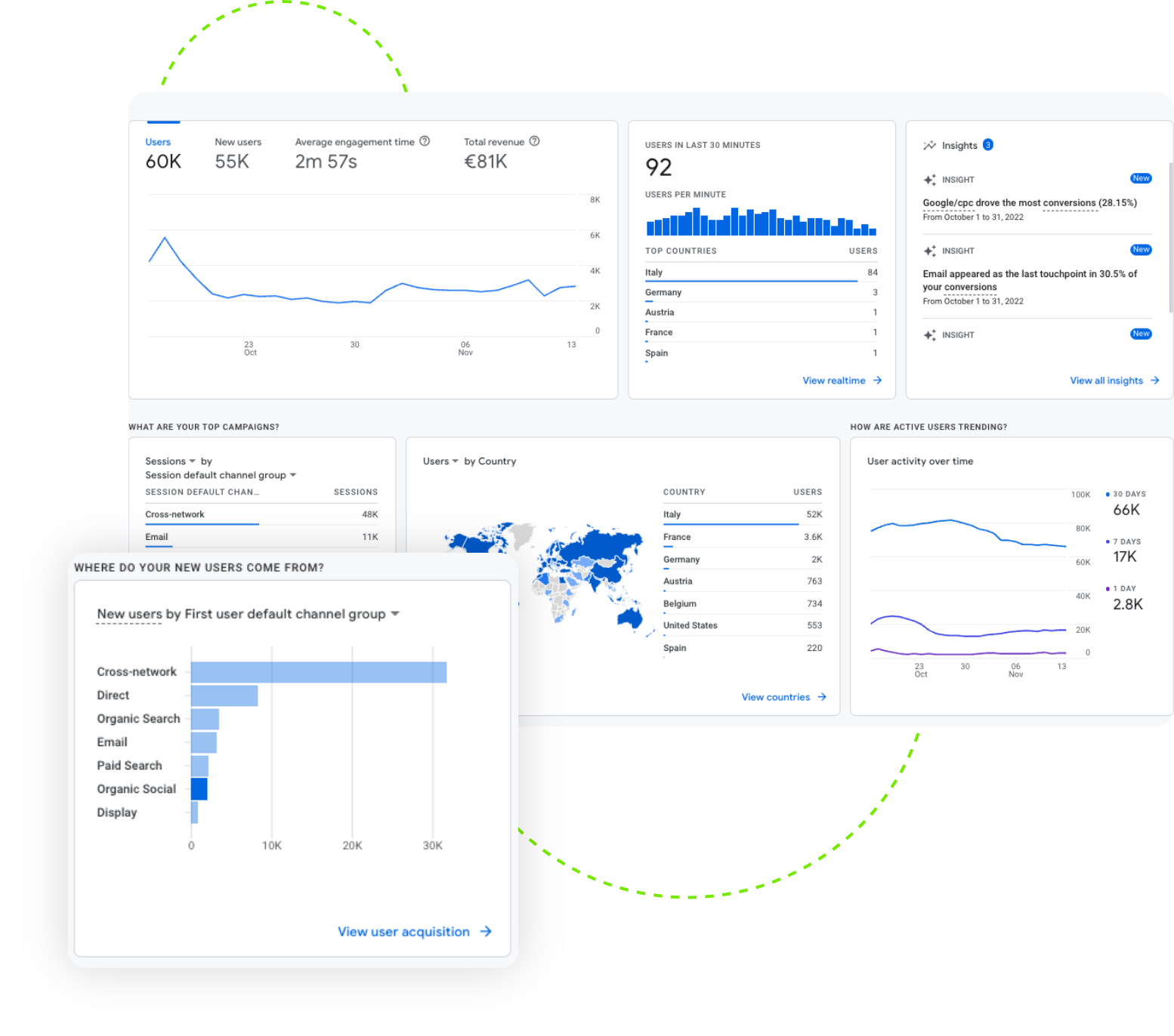 Dall’analisi del Customer Journey alla definizione delle leve strategiche da utilizzare nei vari touchpoint. Guidati dai dati e dalle persone, definiamo la miglior strategia di Digital Marketing e Performance utilizzando i canali più efficaci per il tuo progetto.